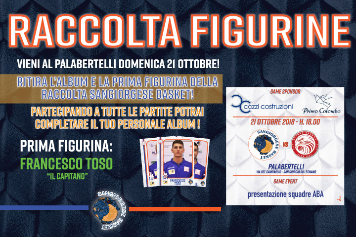 All'ingresso della partita con Alba, Domenica 21/10, sarà possibile ritirare gratuitamente l'album e la prima figurina: Franesco Toso capitano dela nostra squadra.