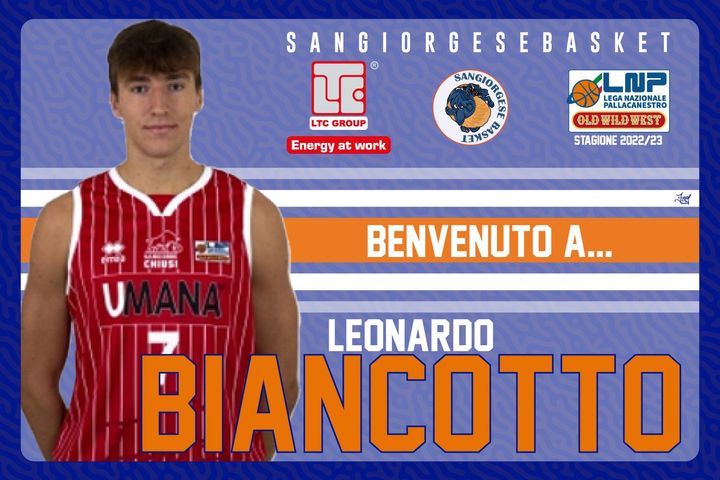Un altro giovane di prospettiva e dal gran talento andrà a rinforzare il roster di coach Roncari. Diamo il benvenuto a Leonardo Biancotto, guardia classe 2002, lo scorso anno in A2 a Chiusi dove ha fatto esperienza in un campionato di alta qualità che gli permetterà di affrontare al meglio questa nuova avventura. Leonardo si è formato nell'Umana Reyer Venezia dove ha fatto tutte le giovanili, vincendo con loro la Nex Gen Under 18, fino al debutto in serie A e in Eurocup. È un giocatore combattivo, che lavora molto duramente in palestra e che sa mettersi sempre a pieno servizio della squadra. Abilissimo tiratore ha nell'attaccare il ferro il suo punto di forza.